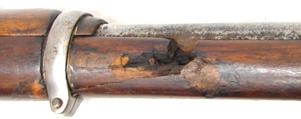 Remington 1901 7mm Mauser caliber rolling block rifle. Gray metal on both frame and barrel. Heavy pitting is along wood line going down the barrel. Wood has been refinished. Bore is dark but rifling is visible all of the way through. Forearm needs work as it is held together by a piece of string. Priced reasonably.
