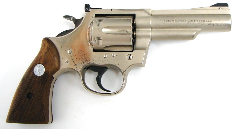 Colt Border Patrol .357 Mag. caliber revolver. Rare 1970s vintage Border Patrol model with satin nickel finish. Shows carry wear (C6395)