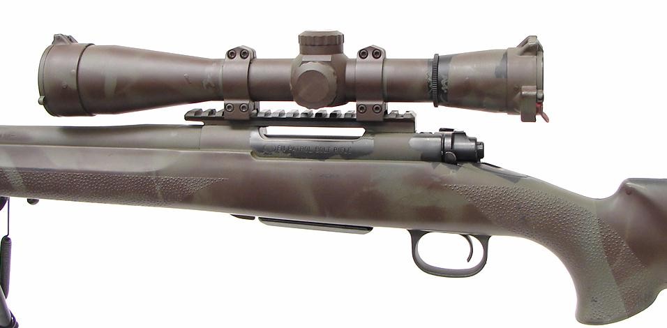 FN Patrol Bolt Rifle .308 Win caliber carbine. This is a tactical carbine with custom camo finish, muzzle break, bipold, and Leupold mark 4 10x scope. In very good condition.
