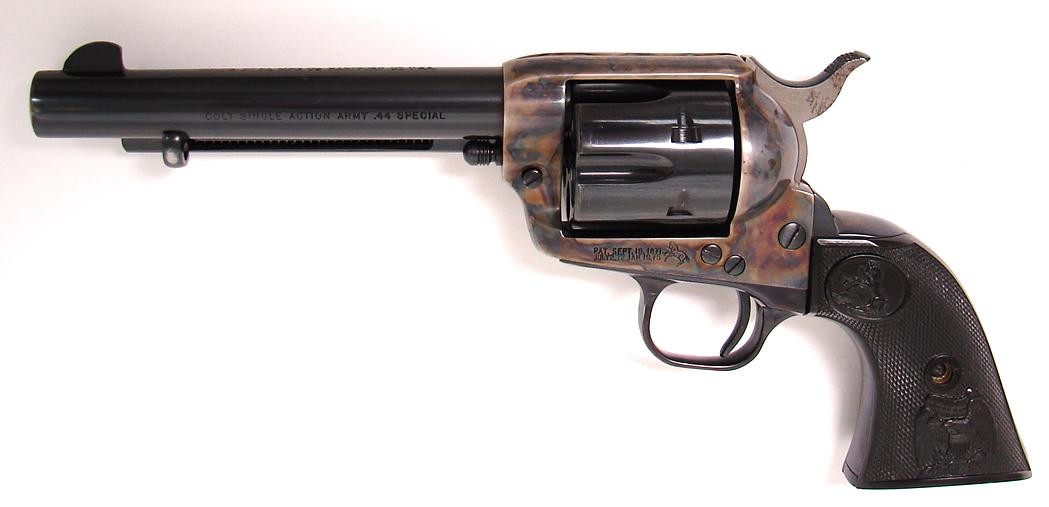 Colt Single Action Army .44 Special caliber revolver. 1970s vintage 3rd generation model with 5 1/2" barrel and slick action job. Near excellent condition.