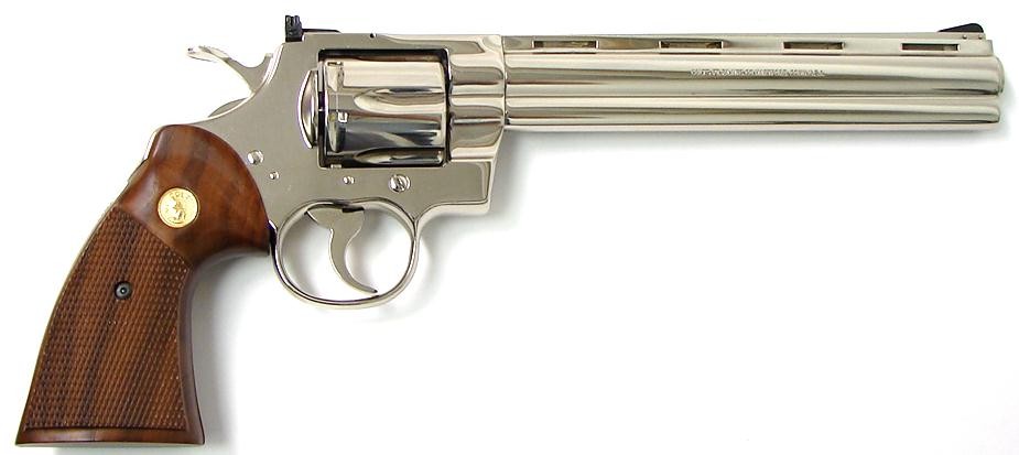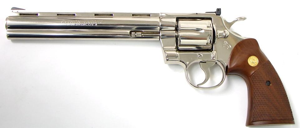 Colt Python Target .38 Special caliber revolver. Rare 8 nickel target model chambered for .38 Special instead of .357 magnum. Excellent condition.