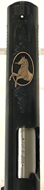 Colt Government .45 ACP caliber pistol. Special edition XSE model with bright blue finish and gold decorations on slide and fanc (C6872)