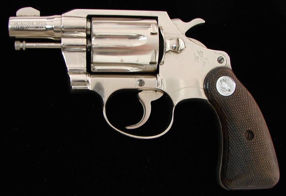 Colt Detective Special .38 Special caliber revolver 2nd issue with nickel finish. Made in 1965. Shows wear, more on the right side. Very good condition.