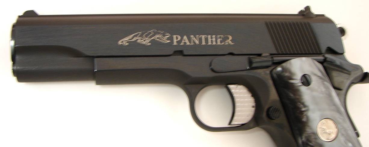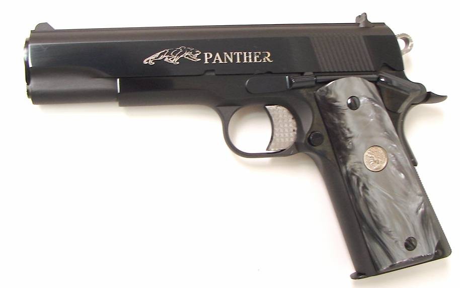 Colt Government .38 Super caliber pistol. Rare Panther Limited Edition with blue finish and jeweled parts. Excellent condition.