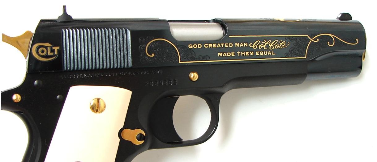 Colt Government .45 ACP caliber pistol. Special edition model "God created man Col. Colt made them equal". Has beautiful engravi (C7810)