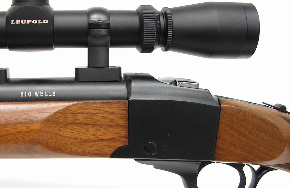 Ruger No 1 .510 Wells caliber rifle. Single shot rifle with custom heavy barrel and muzzle brake. Chambered for .510 Wells African Wildcat cartridge. Very good condition with Leupold 2 x 7 scope.