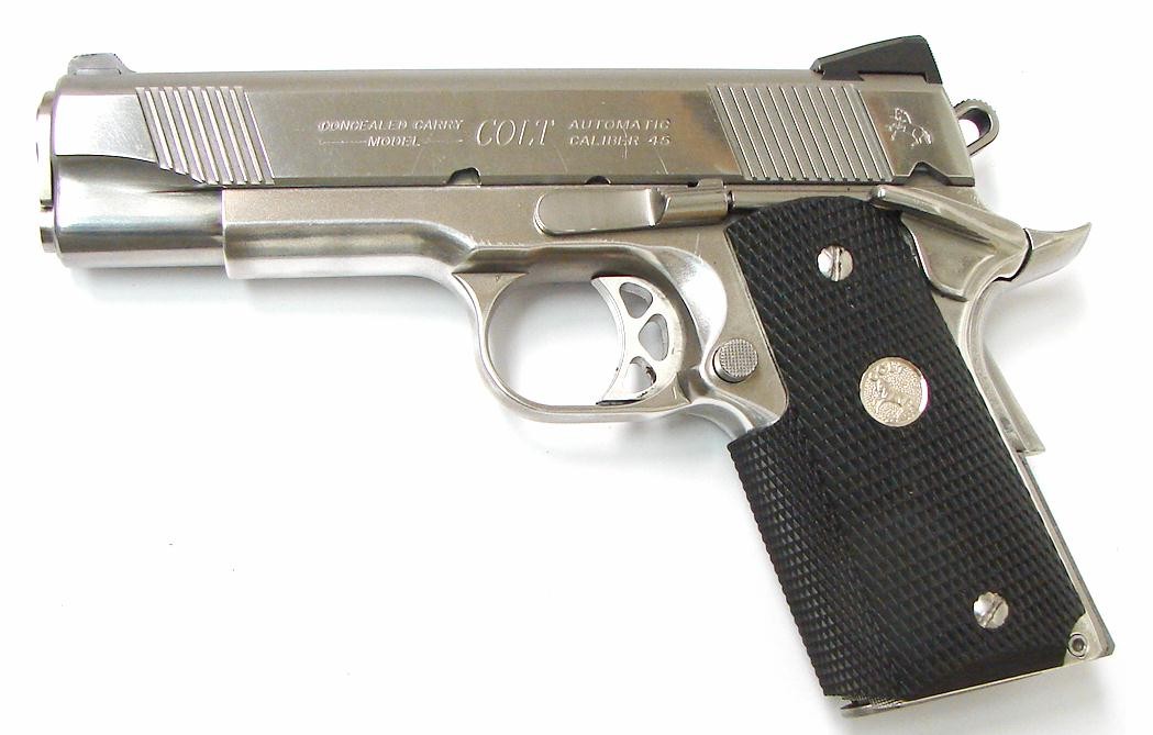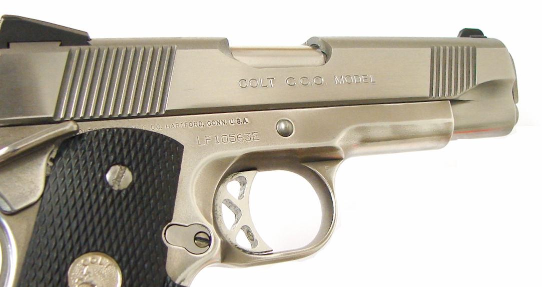 Colt C.C.O. .45 ACP caliber pistol. Stainless "Concealed Carry Officers" model with polished finish. Very good condition.