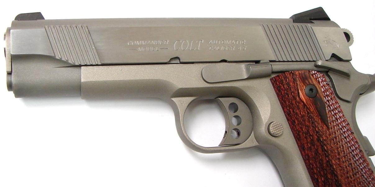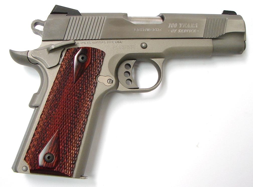 Colt Lightweight Commander .45 ACP caliber pistol. Scarce stainless lightweight model with box and extra magazine. Excellent condition.