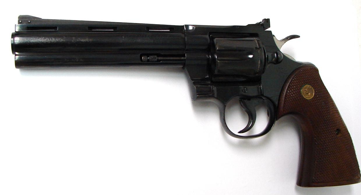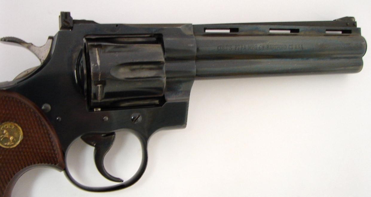 Colt Python .357 Magnum caliber revolver. Very early 6" blue model made in 1958. Shows wear but the bore is excellent and locks (C8646)