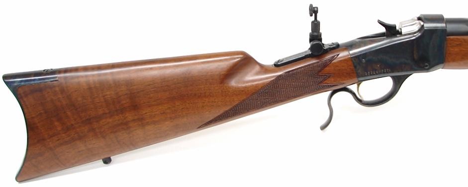 Browning 1885 .45 Colt caliber rifle. Traditional Hunter model with case colored receiver, 1/2 round-1/2 octagon barrel and tang (r6320)