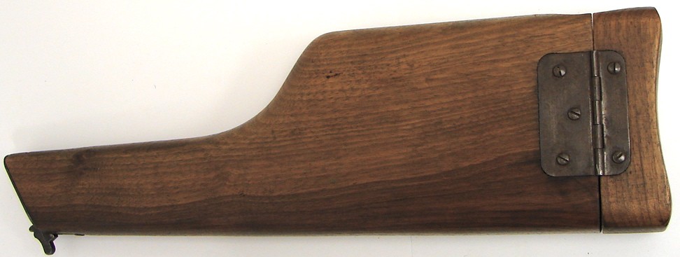 Mauser C96 broom handle holster/shoulder stock. It has numbered attaching iron. The wood has a tiny 1/4" long crack near the iron. In excellent condition. Not military marked.