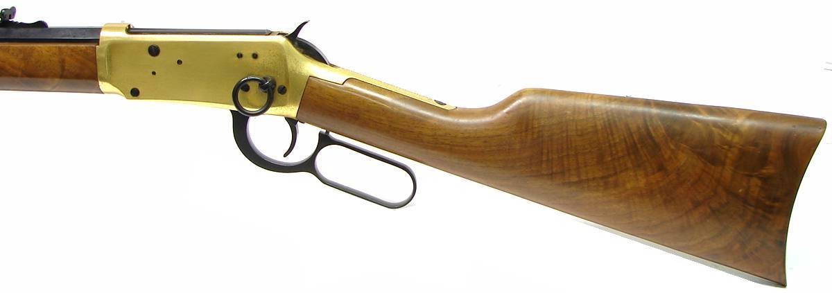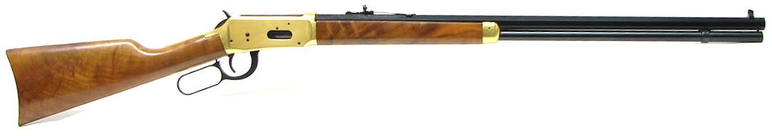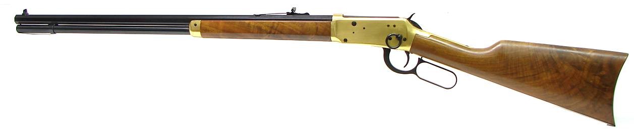 Centennial Winchester 94 .30-30 caliber commemorative 1966 production with 3 digit serial number. 26 octagon barrel. Excellent bore. 98% blue with some areas of light rust on the lever and barrel. The brass plating shows discoloration. The finish on the butt stock shows age cracking. Very good overall condition. No box.
