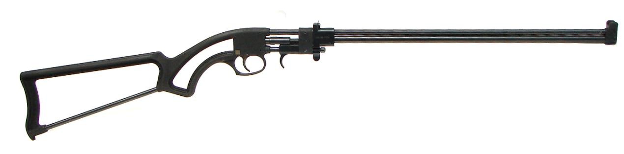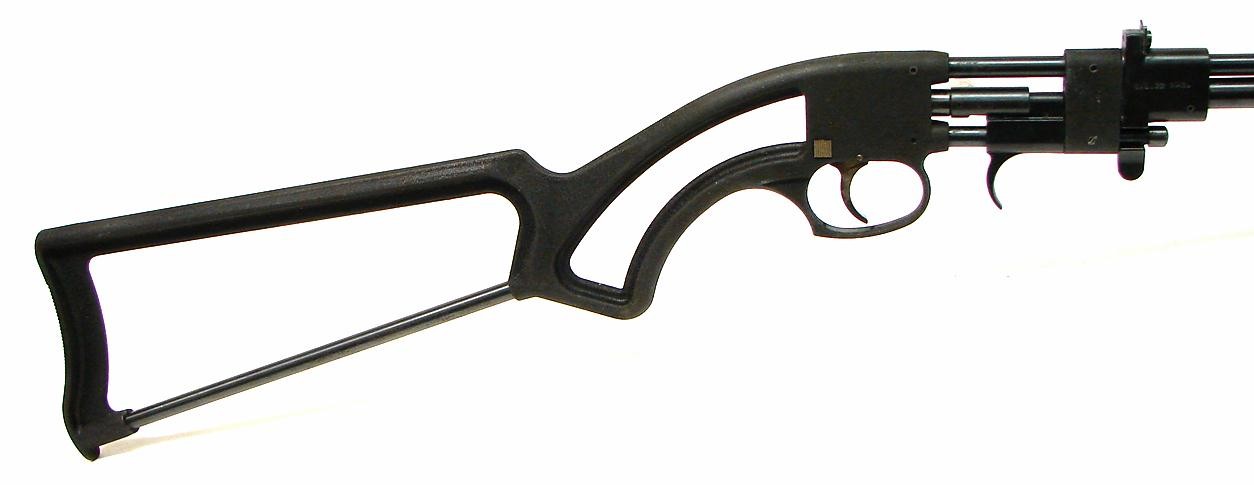 Firearms International Bronco .22 Magnum caliber rifle. Unusual single shot rifle with skeleton stock. Excellent condition with box.