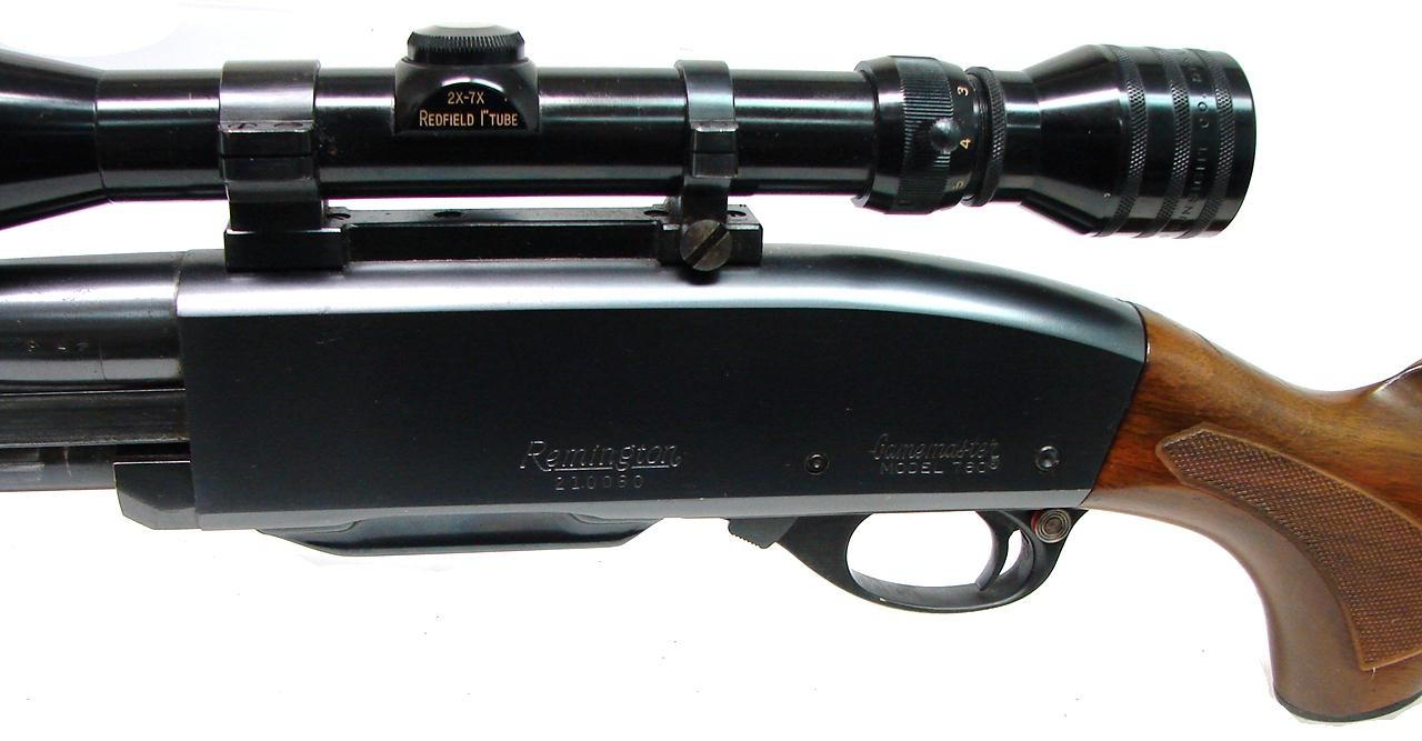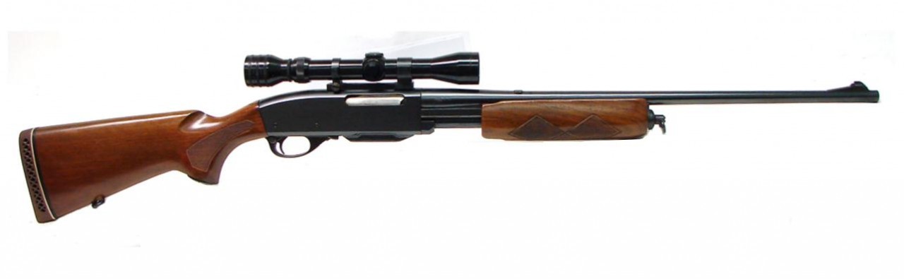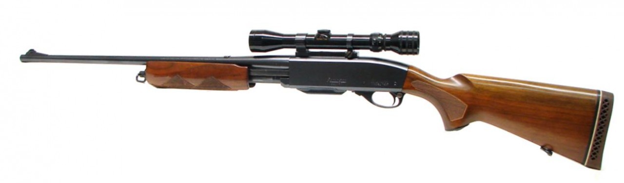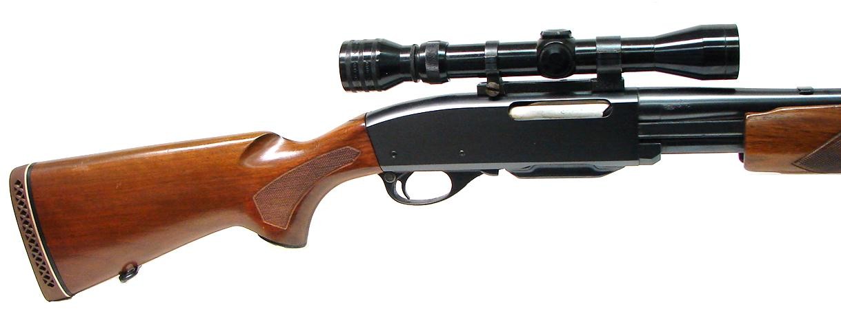 Remington 760 Gamemaster .257 Roberts caliber rifle. Pump action deer rifle in rare .257 Roberts caliber. The metal is about excellent. The stock is very good with a bit of a blemish on the forend, perhaps from heat. Overall a nice looking gun, with a vintage redfield 2x7 scope.