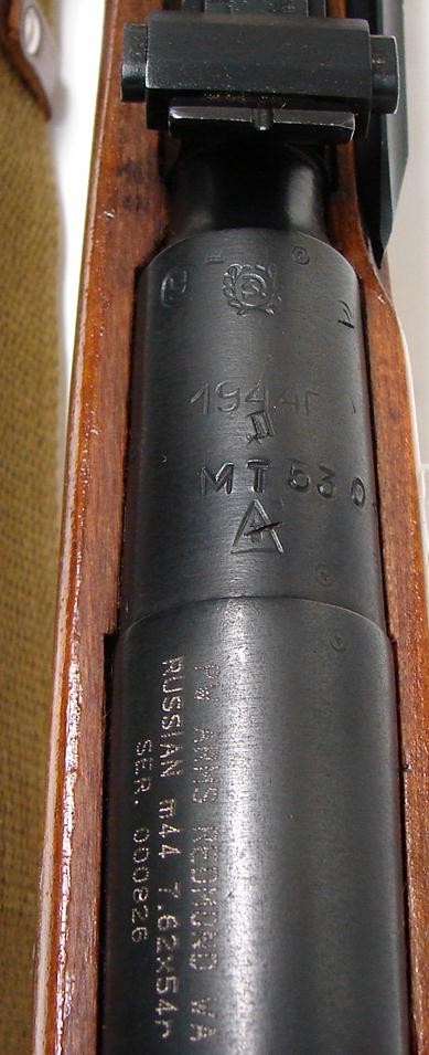 Russian M44 7.62x54R caliber rifle. 1944 production. Post World War II arsenal refurbished. Matching serial numbers. Very good bore. Has original rod and sling. About excellent overall condition.