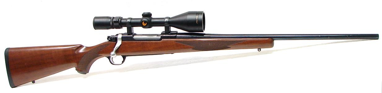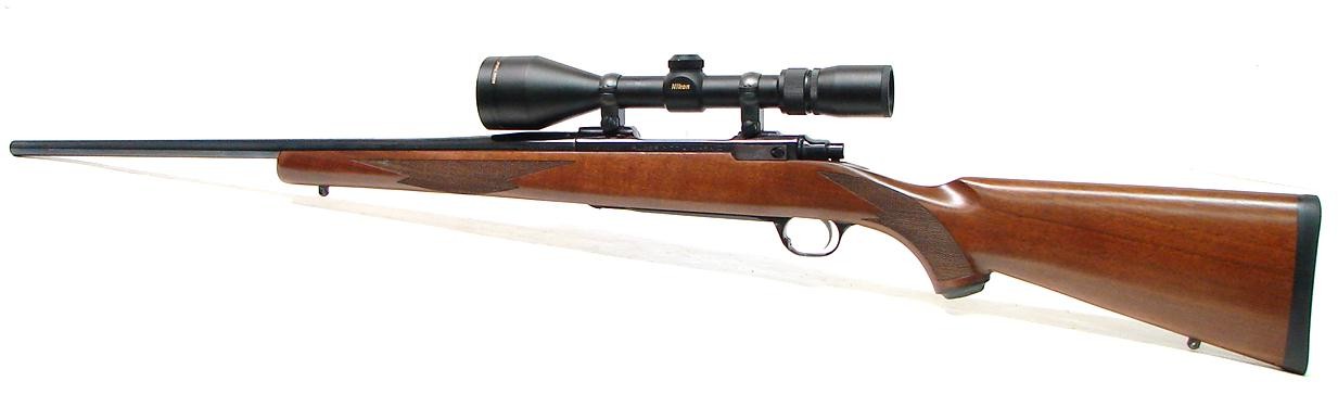 Ruger M77 Mark II .30-06 SPRG caliber rifle. Bolt action deer rifle with Nikon 3x9 scope. Shows some hunting use, with some spots on the barrel blue. Overall very good condition.