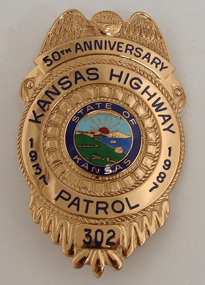 Kansas Highway Patrol 50th Anniversary commemorative Smith & Wesson 586 .357 Magnum caliber revolver engraved and inlaid presentation case with replica badge.