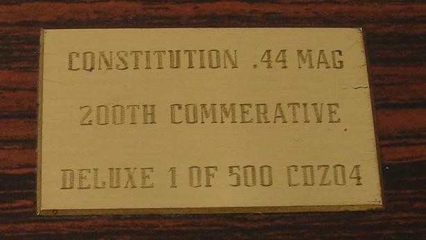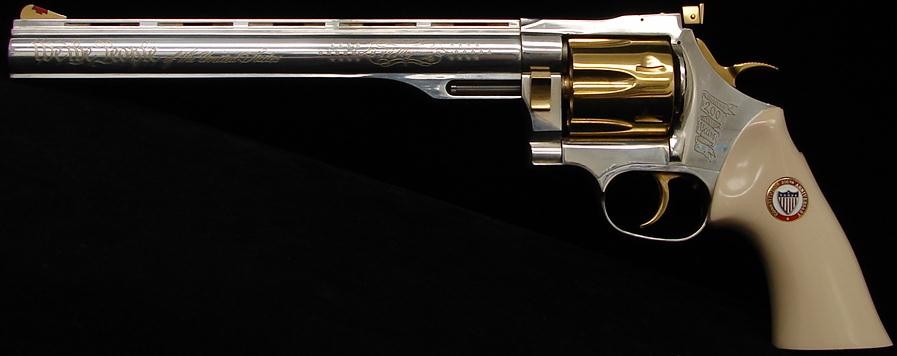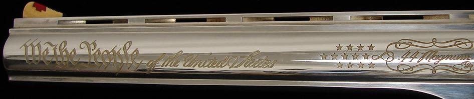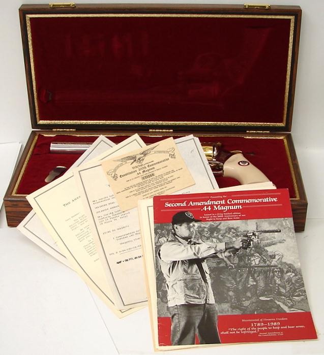 Constitution 200th Anniversary .44 Magnum caliber Dan Wesson commemorative revolver with silver and gold finish and fancy grips. Has case and papers.
