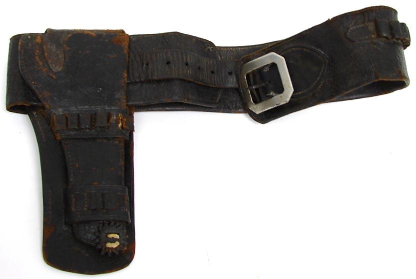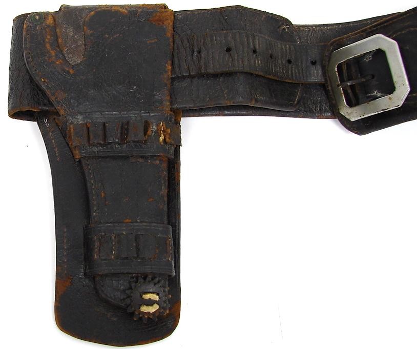 Wyoming Belt & Holster for 7 1/2 single action. 3 1/2 wide belt marked Knox & Tanner Rawlins Wyoming. Cartridge loops need some stitching. Rare 1880s outfit.