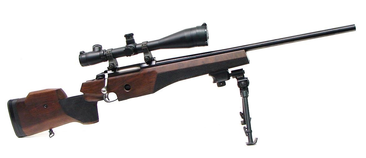 Tikka M595 7mm-08 Rem caliber rifle. Master Sport model with competition Walnut stock, bipod and Leupold Mark 4 8.5 X 32 Long Range scope. A great set up!
