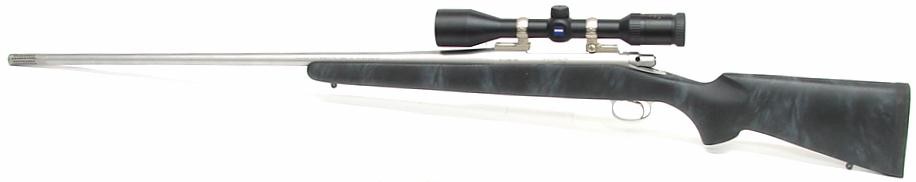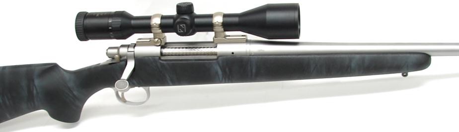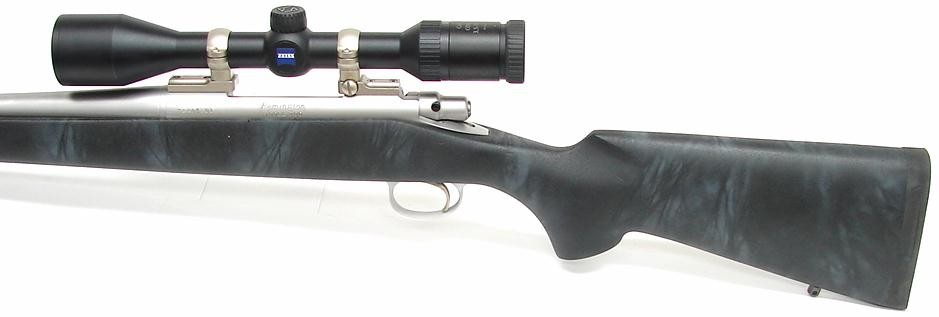 Remington 700 .375 Ultra Magnum caliber rifle with 26 barrel, muzzle brake, after market stock, 2 lbs 8oz trigger, Zeiss Conquest 3.5-10 x 44 scope and Leupold bases and rings.