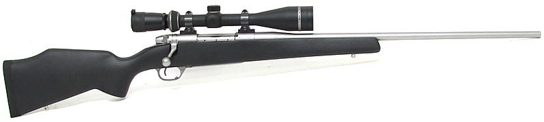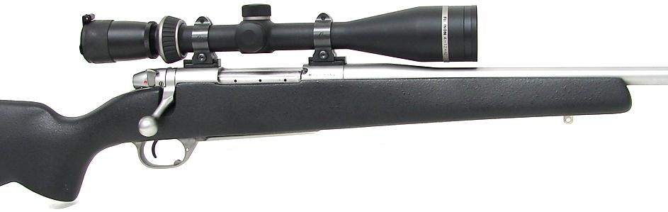 Weatherby Mark V .280 Rem caliber rifle. U.S. made stainless synthetic model in unusual caliber. Excellent condition with Fujinon 4 x 12 scope.