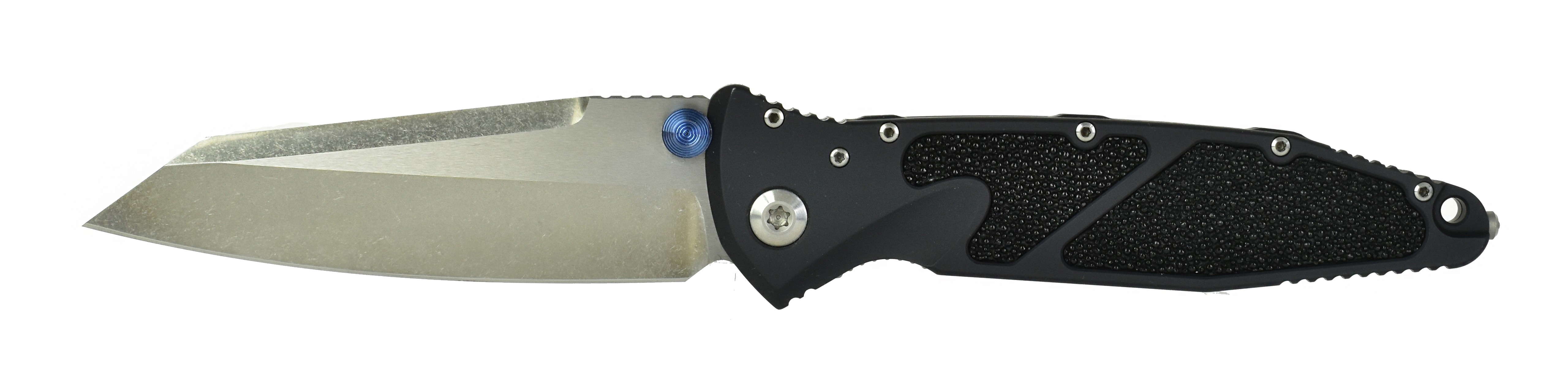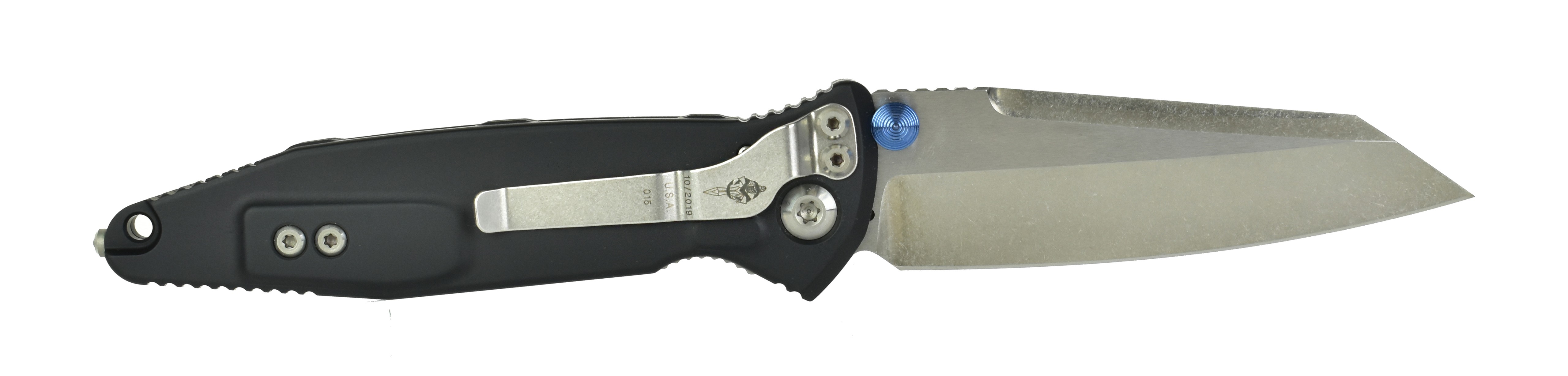 Marfione Socom Elite “Warcom” Folder. Two-tone stonewash blade, anodized alloy handle with stingray skin inlay, satin hardware and blue Titanium accent. New.