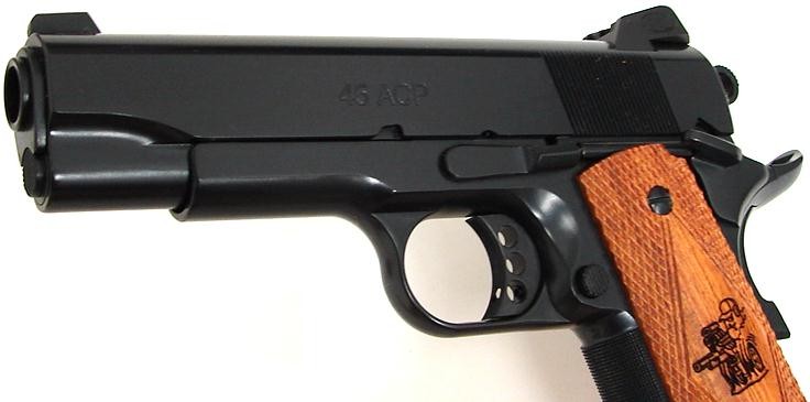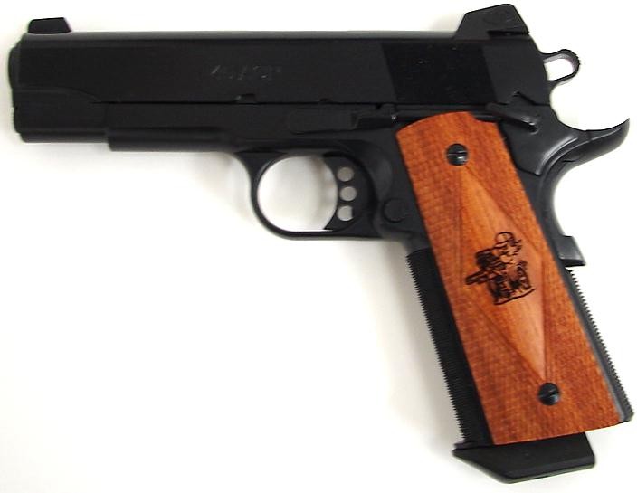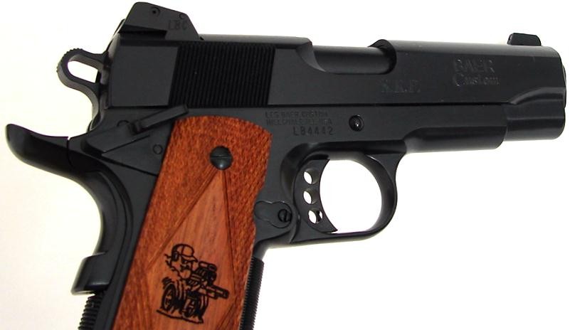Les Baer Custom SRP Commanche .45 ACP caliber pistol. Top of the line 4 1/4 tactical model. Early model with race car grips. Excellent condition with wood case.