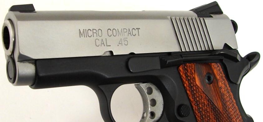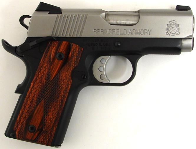 Springfield Micro Compact .45 ACP caliber pistol. 2-tone carry gun with 3 barrel and night sights. Excellent condition. (pr10251)