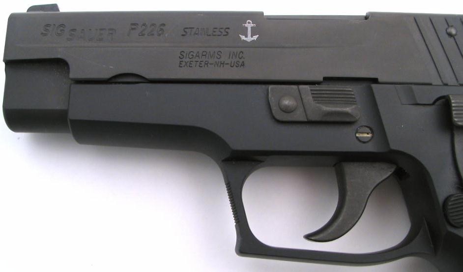 Sig-Sauer P226 9mm caliber Navy model pistol.