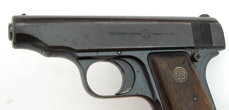 Deutsche Werke Pocket Automatic .25 ACP caliber pistol. Ortgies with a blue and plum patina. Right grip has a sliver missing. Ha (pr11607)