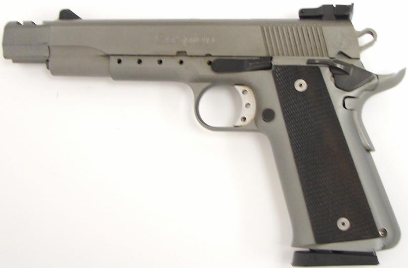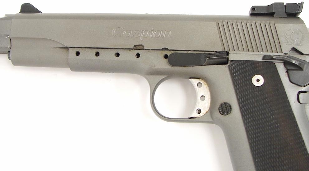 Caspian 1911 .45 ACP caliber pistol. High capacity comp gun with frame drilled and tapped for scope mount. In very good condition.