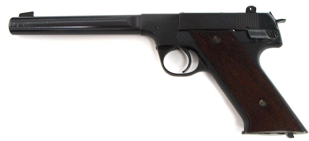 High Standard HD Military .22 LR caliber pistol. 1940s vintage model in near excellent condition with original black box and papers.