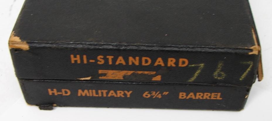 High Standard HD Military .22 LR caliber pistol. 1940s vintage model in near excellent condition with original black box and pap (PR14354)