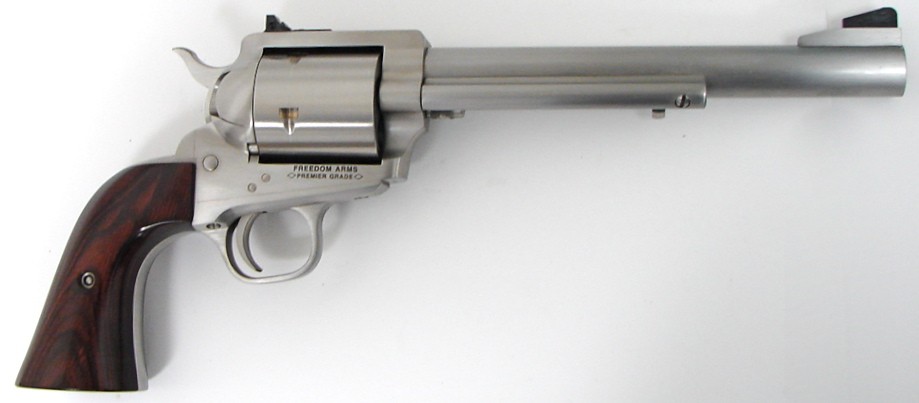 Freedom Arms 83 Premier Grade .454 Casull caliber revolver. Stainless model with adjustable sights and wood grips. Excellent condition with box.