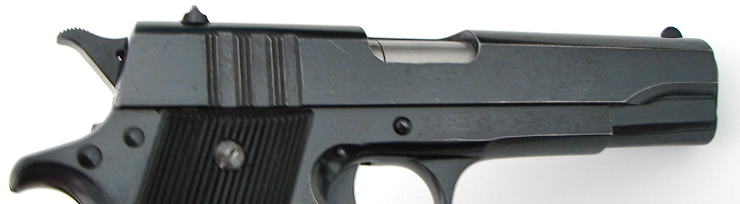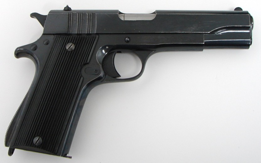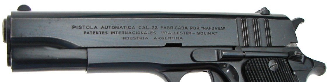 Argentina Ballester-Molina .22 LR caliber pistol. Hard to find variation. Excellent bore. Gun has 98% original blue. Grips are perfect. Very fine example of the "South American Ace".