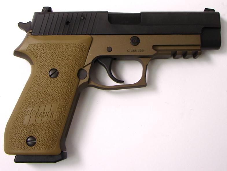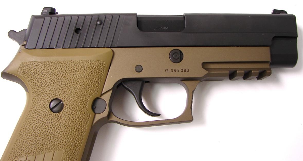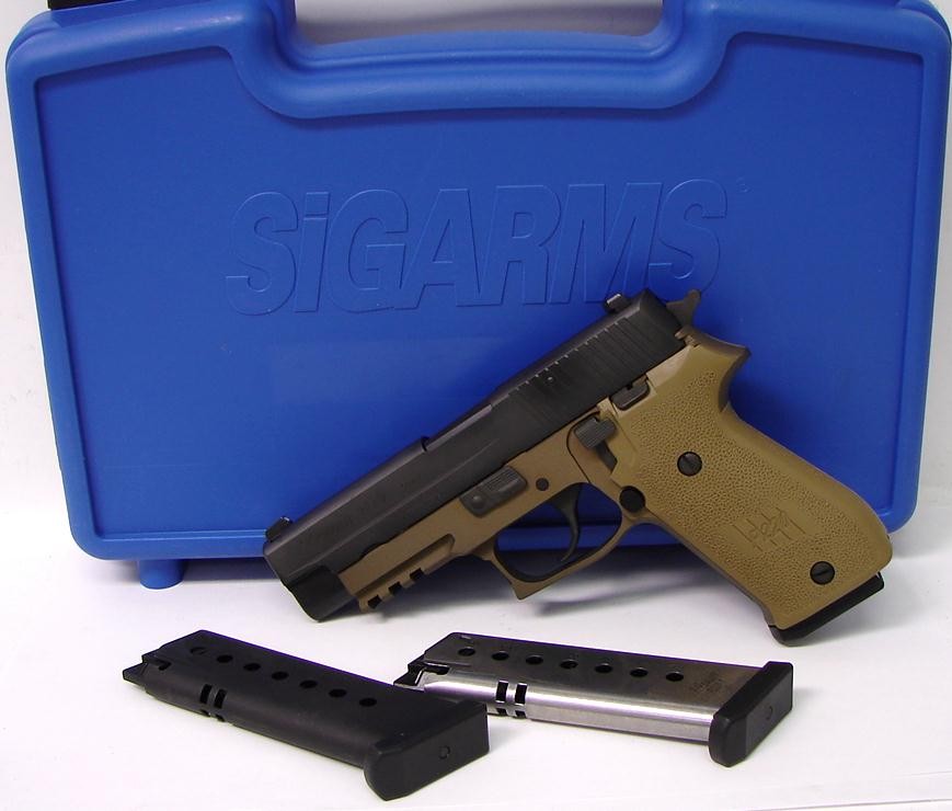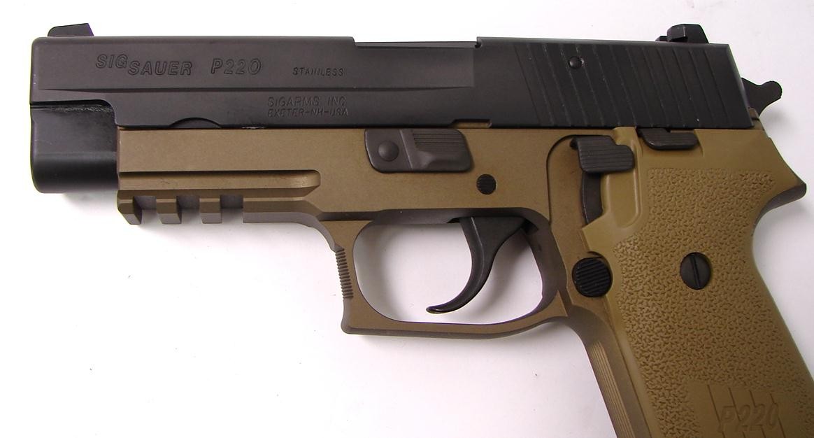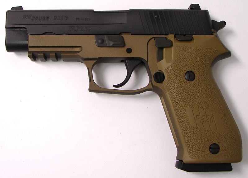 Sig Sauer P220R 45 ACP caliber pistol. Combat model with Dark Earth frame in excellent condition with box and extra magazine.