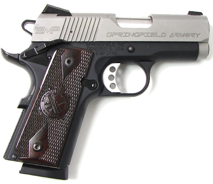 Springfield Armory EMP .9 MM Para caliber pistol. "Enhanced micro pistol" with 2-tone finish and 3" barrel. Comes with box and 2 magazines. In very good condition.