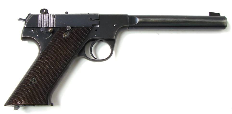 High Standard HD Military .22LR caliber pistol. 1940s vintage target pistol with external hammer and 6 3/4" barrel. Good condition.