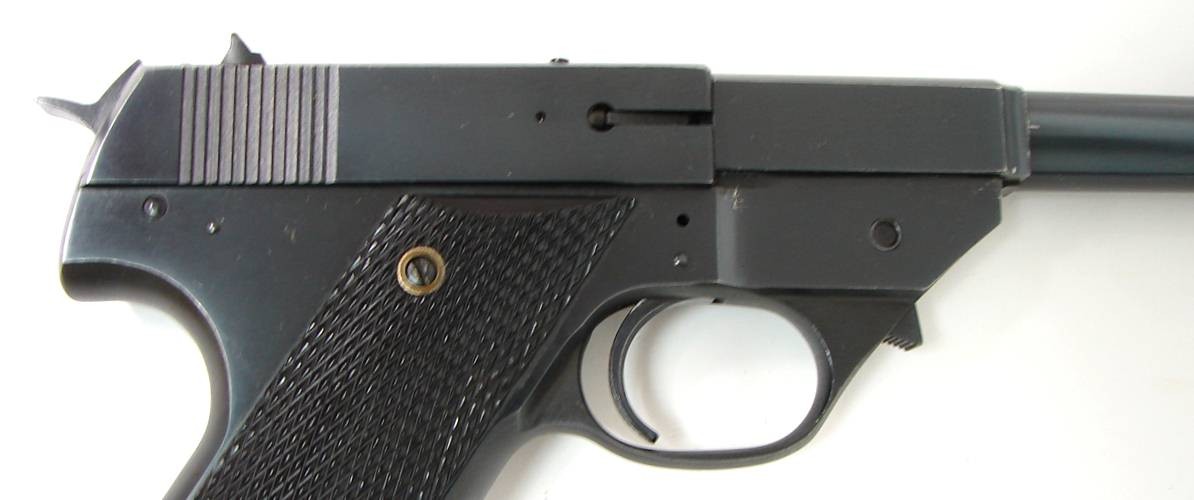 High Standard G380 .380 Auto caliber pistol. Excellent bore. Gun has 95% blue. Small area pits on right side of barrel near muzzle. Very nice G-380.
