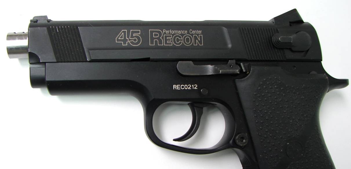 Smith & Wesson 45 Recon PC .45 ACP caliber pistol. Scarce Performance Center Recon model with extended ported barrel. Excellent (pr16670)