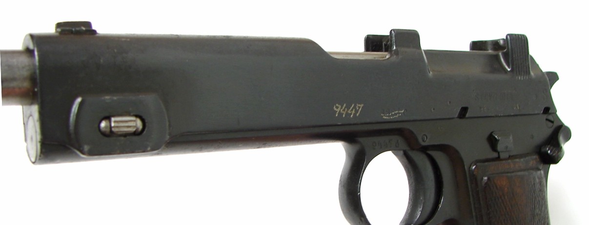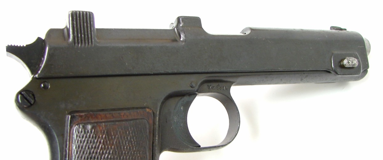 Steyr 1914 9 MM caliber pistol. 1914 production for the Austrian Military. Arsenal refurbished post WW II. Very good bore. Good (PR18721)