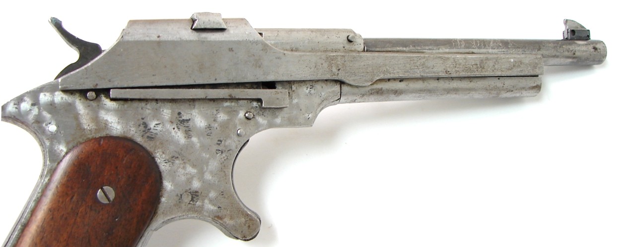 Unknown Prototype .22 caliber pistol. Oddball semi-auto, do not know who made this one. It appears to have a Colt Woodsman barre (PR18803)