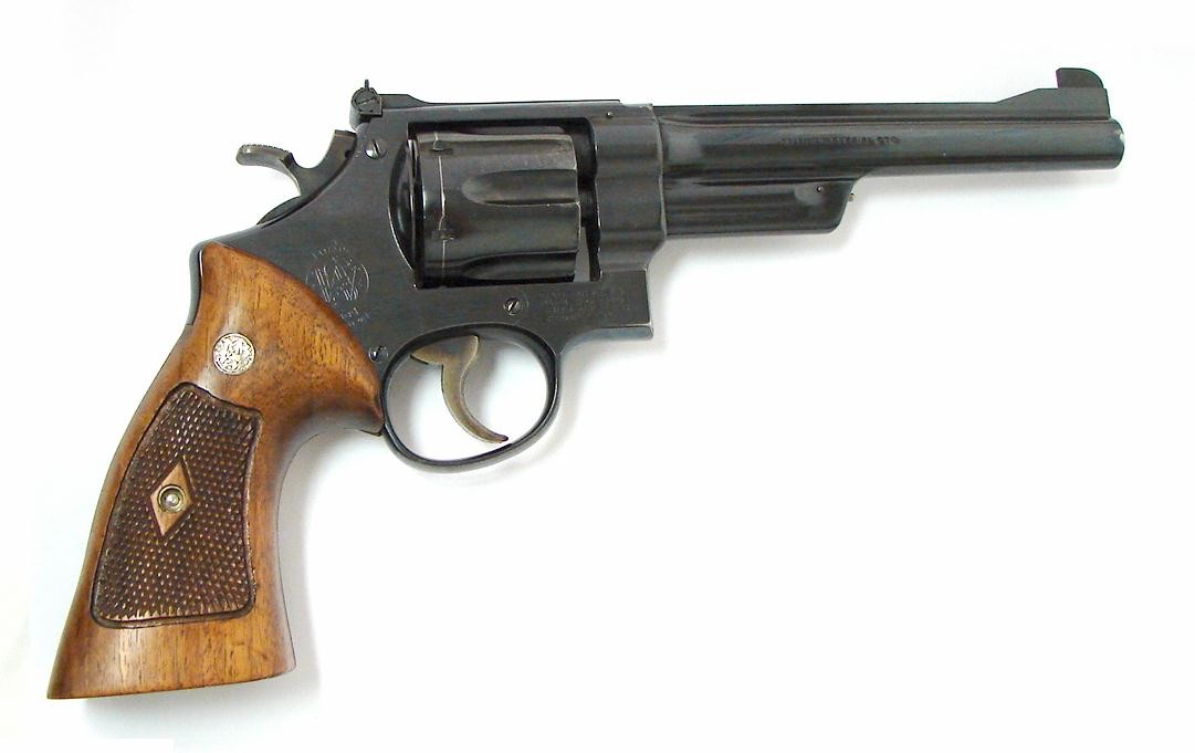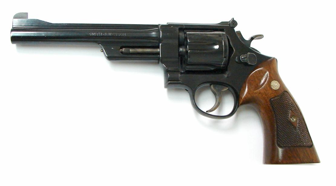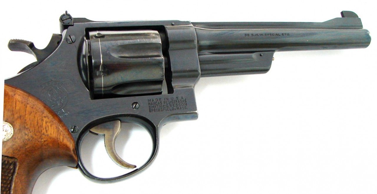 Smith & Wesson 38/44 Outdoorsman .38 Special caliber revolver. Post-War 5-screw model with 6 1/2" barrel, target grips, the grip (PR19746)