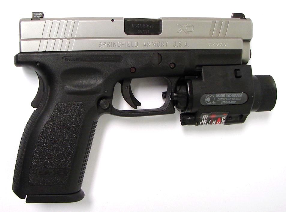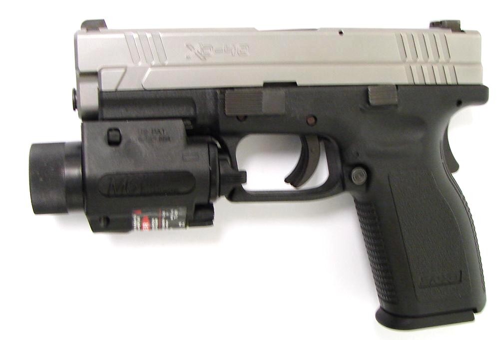 Springfield XD-40 .40 S&W caliber pistol. 4" Bi-tone model with night sights and M6 laser/light unit. Excellent condition.