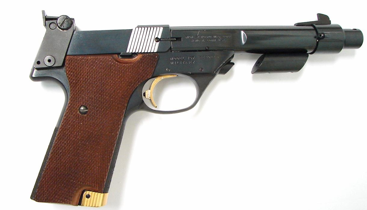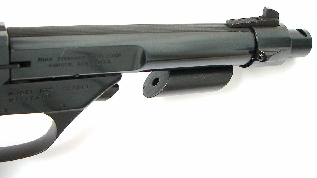 High Standard 107 Military Supermatic Trophy target model with 5 3/4" barrel, compensator and barrel weight. The gun has been ex (PR23112)