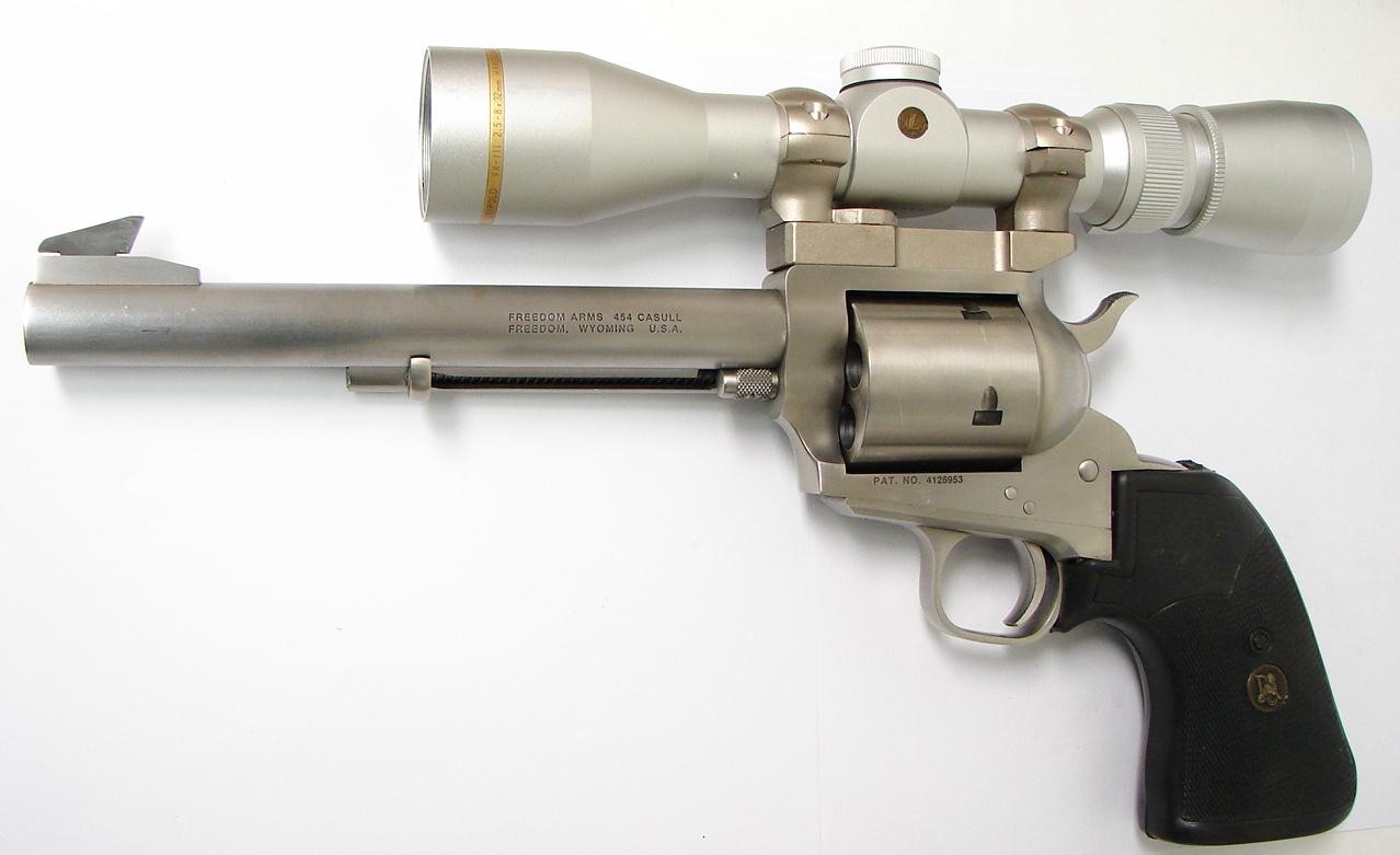 Freedom Arms Premier Grade .454 Casull caliber revolver. 7 1/2" model with Leupold 2.5x8 scope and Pachmayr rubber grips. Also h (PR23203)