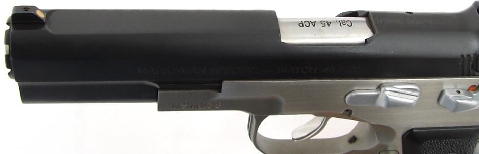 Bren 10 Marksman Special .45 ACP caliber pistol. Rare .45 Match version of the Bren Ten. Stainless frame with blue slide. Excellent condition.