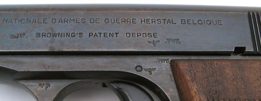 FN 1922 .32 ACP caliber pistol. Nazi Waffenampt marked WAA 140. 80% blue.