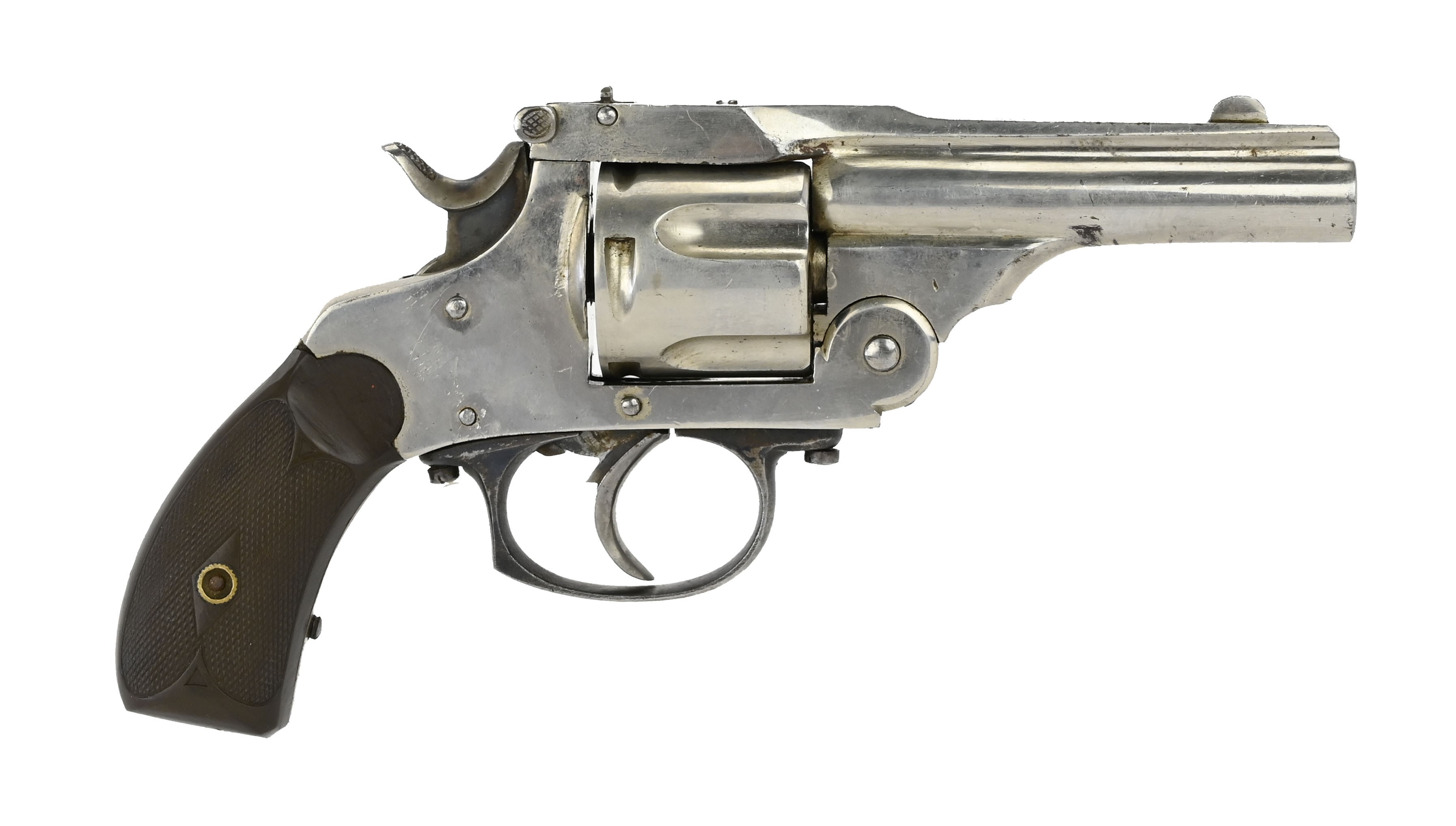 Belgian Top Break .38 S&W caliber revolver. 3 ¼” Nickel revolver made in the 1890’s. Action works. Good overall condition.